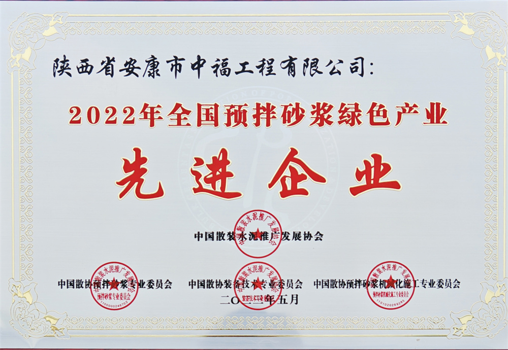 榮獲2024預(yù)拌砂漿先進(jìn)企業(yè)