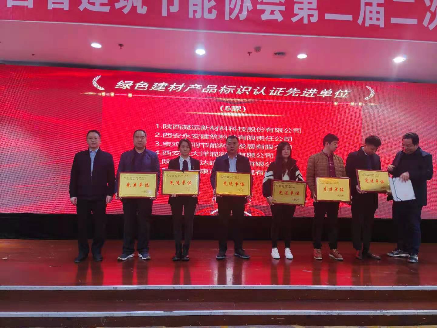 在會議表彰環節,中福公司喜獲陜西省建筑節能協會頒發的“2020年度建材產品標識認證先進單位”和“扶貧攻堅先進單位”獎項。兩項榮譽的獲得,標志著中福公司在發展綠色建材產業,提升企業市場競爭力以及政府和社會對企業的認可度等方面將起到積極的促進作用,為公司的發展之路創造良好的外部環境。