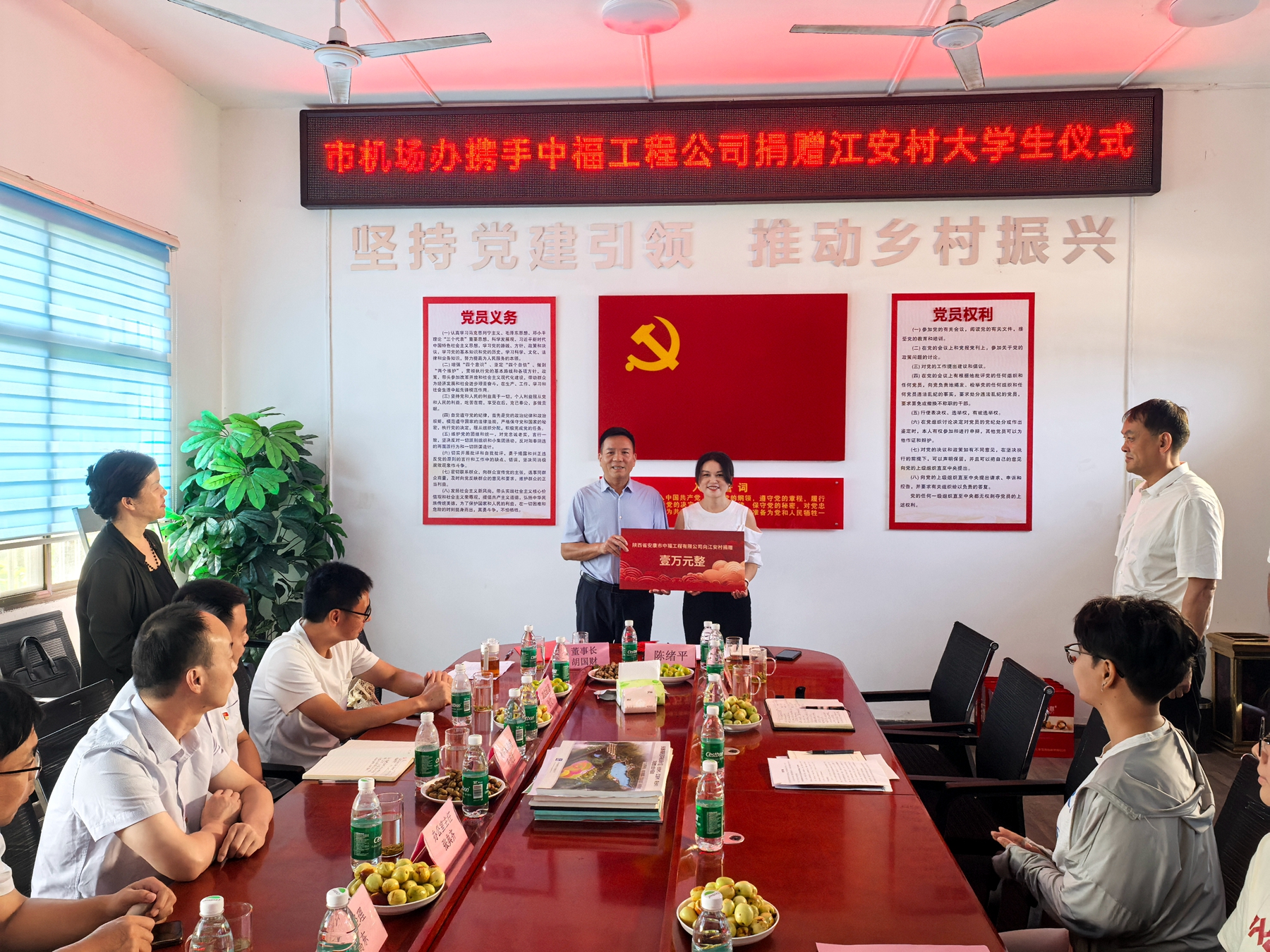捐贈儀式由陳緒平副主任主持,他首先代表市機場辦和江安村對中福公司此次金秋助學的善舉表示感謝,對公司多年來積極參與扶貧攻堅和鄉村振興等公益事業表示贊賞與肯定。江安村支部書記何向慧向與會人員介紹了江安村基本情況,向各級領導和愛心企業長期以來對江安村的關心與支持表示感謝。高新區慈善協會副會長嚴海燕、 |