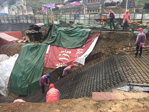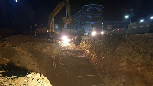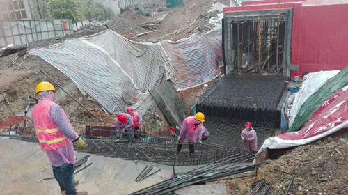香溪洞路口地下通道冒雨施工搶進度